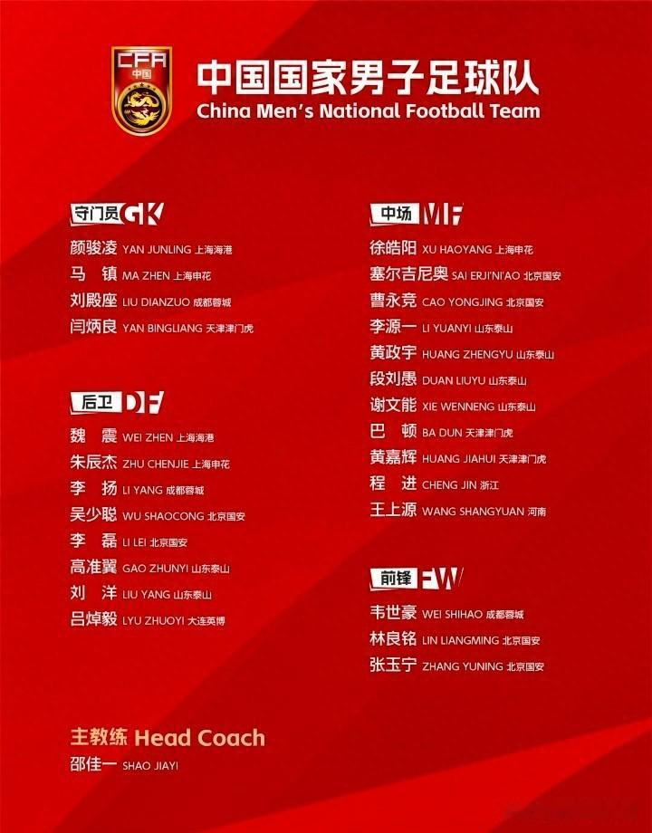 邵佳一的首期名单包含了28名球员,在门将、后卫、中场和前锋四个位置上都有新意。