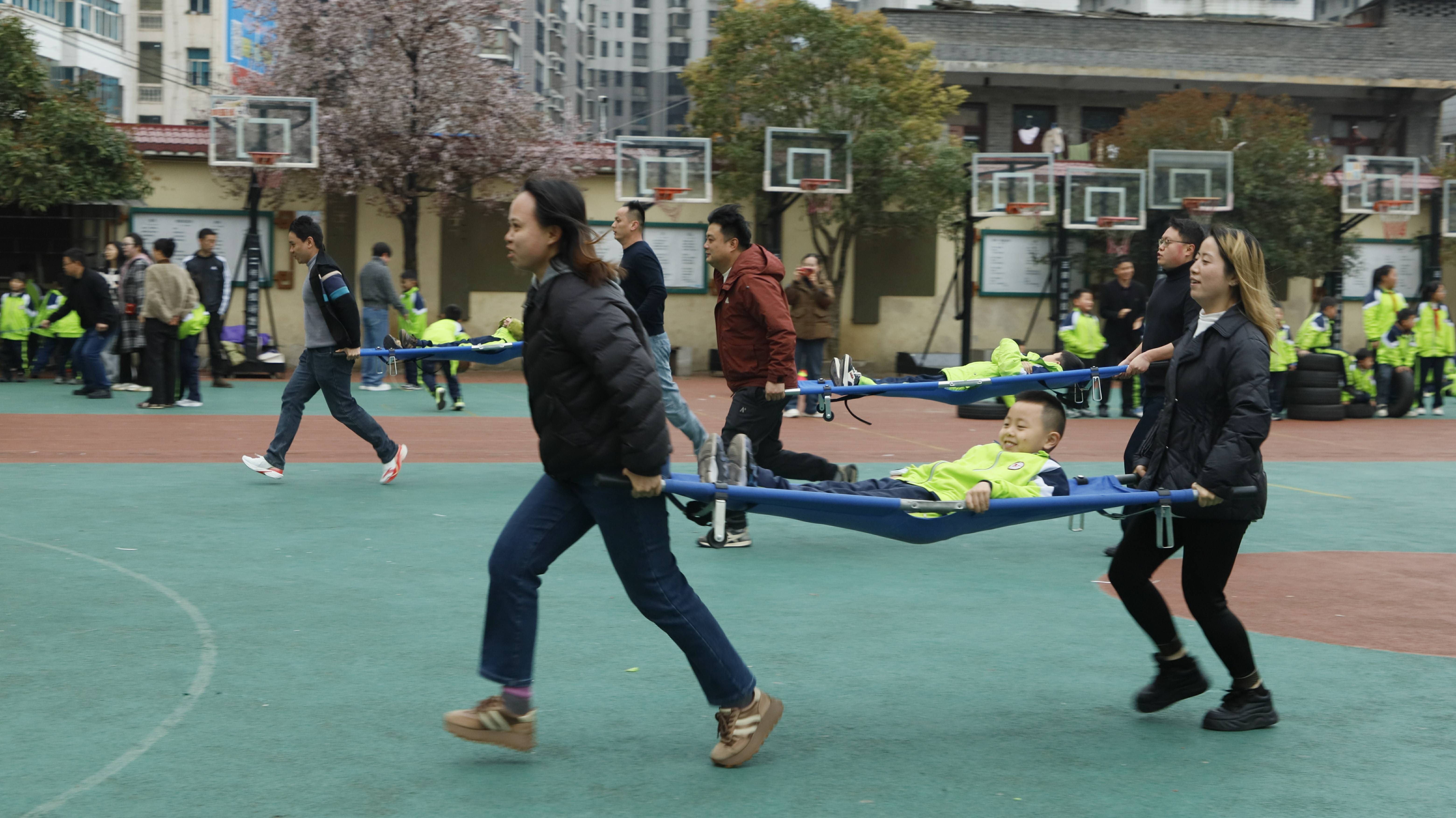在织金县第八小学开学趣味体育活动中,学生们正在拔河。 受访者供图在贵州其他市州的一些校园内