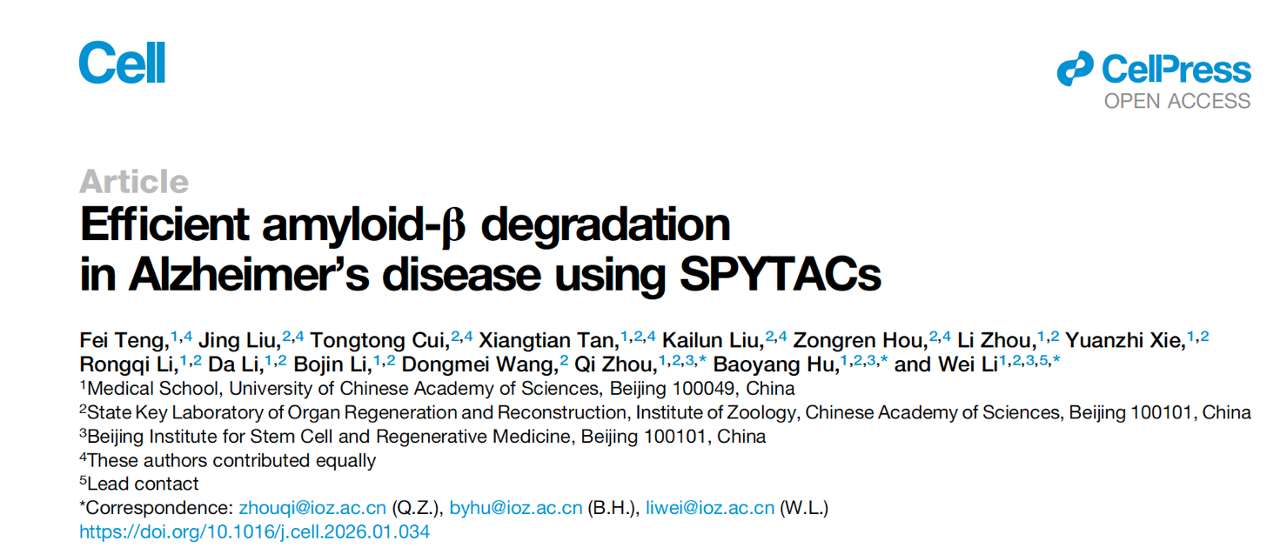 SPYTAC有望实现阿尔兹海默病安全有效治疗(Cell,2026)